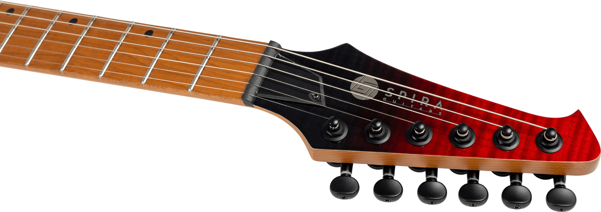 It features a roasted Poplar body, a figured Maple top or splated Poplar depending on colors, a roasted Maple bolt-on neck, a roasted Maple fretboard with 24 frets, agressive Spira Villain humbucking pickups with ceramic magnets and fixed bridge.